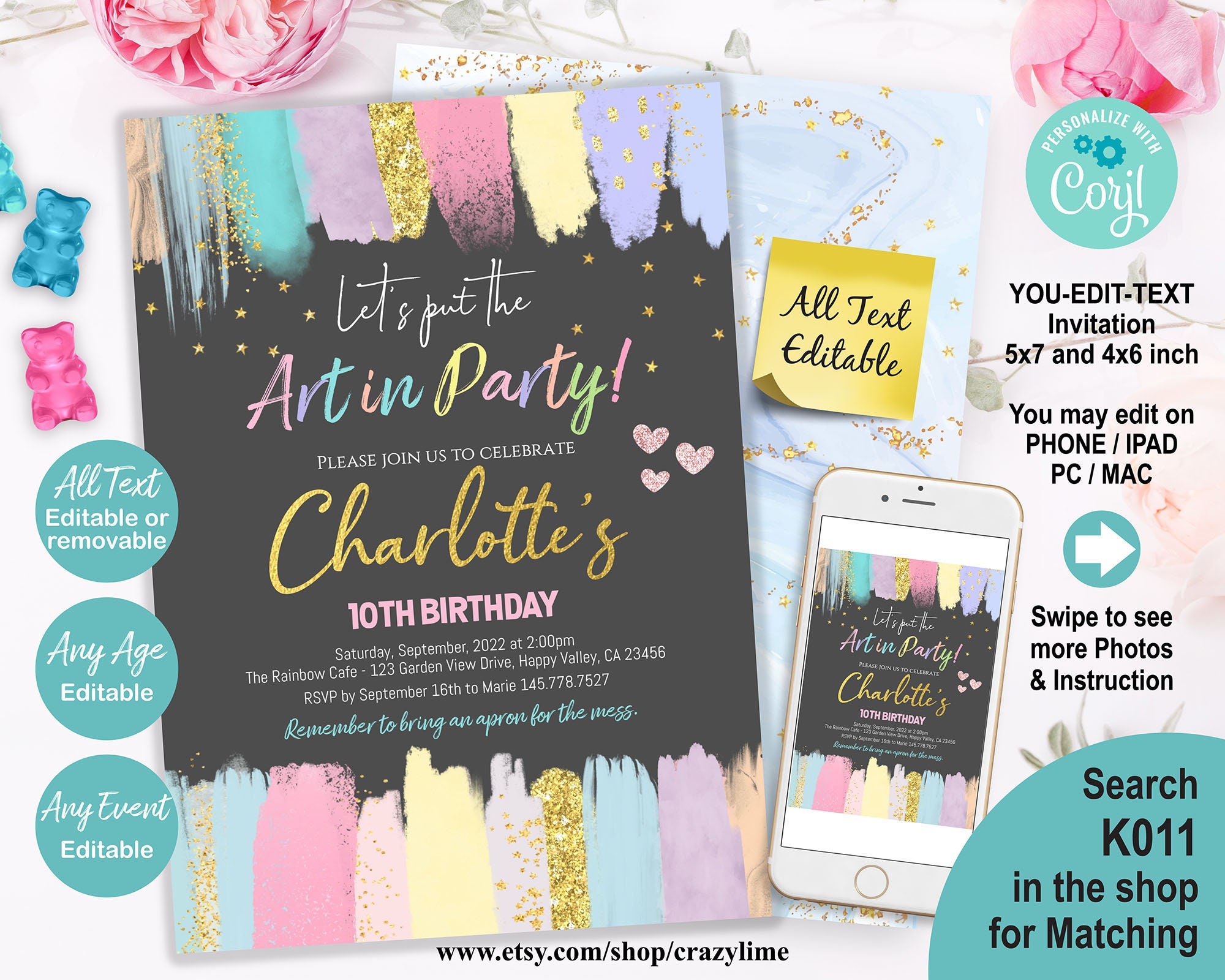 Art Paint Party Invitations Art Birthday Party Invitations Etsy